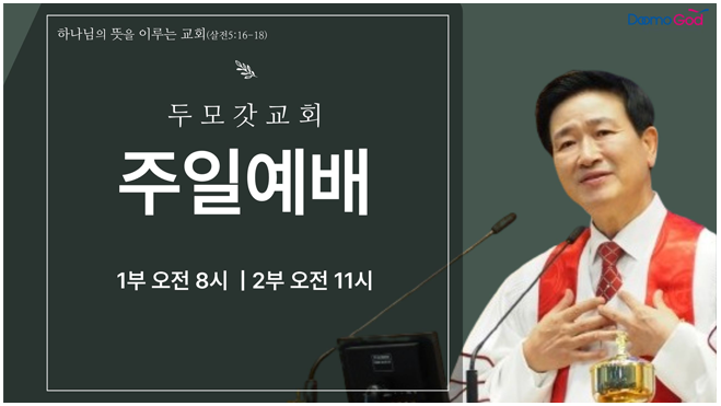 | 수요예배 | 수요일 오전 11:00 | 5층 예루살렘성전 |